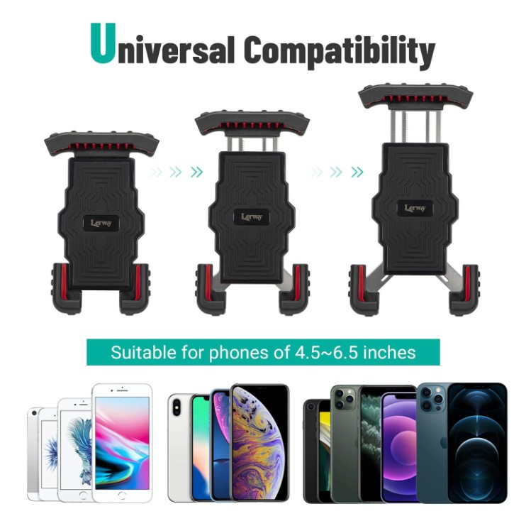 Keep your phone safe, stable, and within easy view while you ride with this Universal Bike & Motorcycle Phone Mount. Designed for smartphones and GPS devices between 4.6 to 6.5 inches, it combines a rugged handlebar clamp with strong aluminum arms to ensure maximum durability and grip.