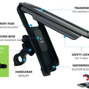 Made from durable, weather-resistant materials, this holder ensures maximum protection against rain, dust, and splashes. Its secure locking mechanism and anti-slip grip keep your phone stable, even on bumpy roads. The transparent touch-sensitive front cover allows you to operate your smartphone without removing it from the case, making navigation smooth and hassle-free.