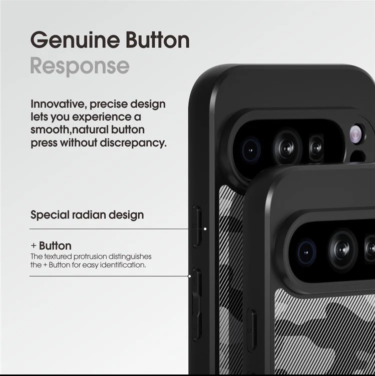 Built with dual-layer construction (TPU + PC), the soft TPU bumper absorbs shocks from accidental drops, while the solid polycarbonate back ensures powerful resistance against scratches and scuffs. The transparent back lets your Pixel 9 Pro’s stunning design shine through, and the black tinted edges give it a sleek, futuristic look.