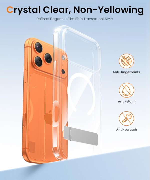 8 reviews for iPhone 17 Pro Max Cover Magnetic Back with Build-in Stand, [Compatible with Magsafe], Rugged Shockproof Protective Back & Transparent Slim Case for iPhone 17 Pro Max 2025 6.9″, Clear
