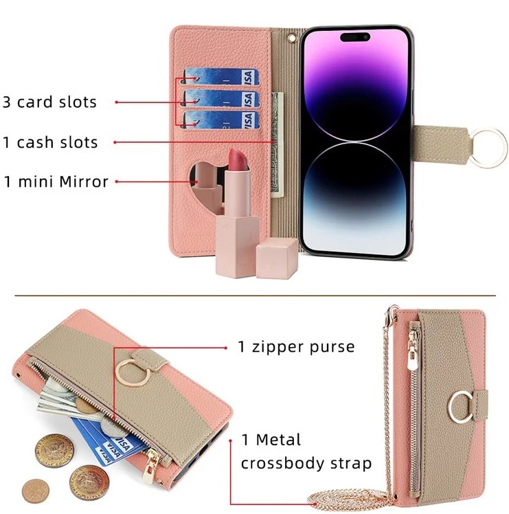 The case includes a built-in wallet design, featuring card slots and a pocket to hold your ID, cards, or cash securely. Say goodbye to carrying bulky wallets — this cover is all you need when stepping out. It also comes with a detachable chain shoulder strap, offering hands-free convenience while maintaining a fashionable appearance. Whether you prefer to wear it crossbody or over the shoulder, it provides both comfort and versatility.