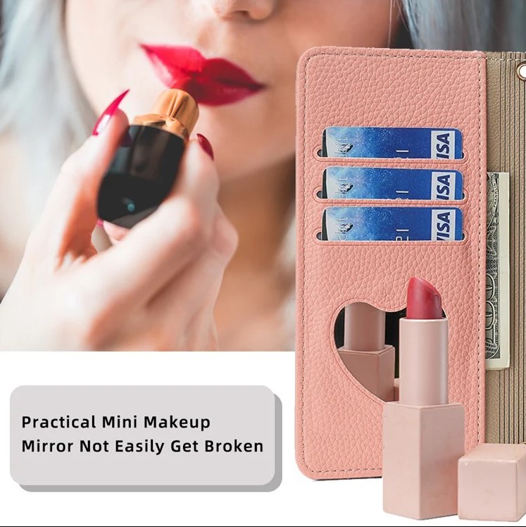 💖 Mirror Wallet Design – Stylish PU leather cover with built-in mirror for quick makeup or appearance checks.