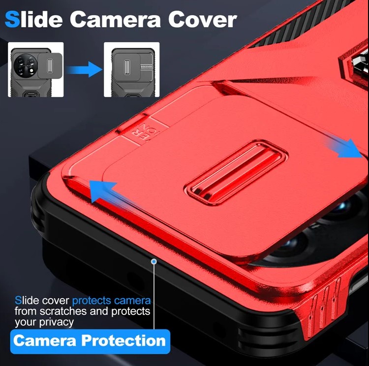 OnePlus 11 5G Case – TPU+PC Ring Kickstand Lens Lid Phone Cover (Red)