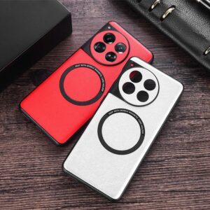 OnePlus 12 5G Case – PU Leather + TPU Back Cover Compatible with MagSafe (Red)