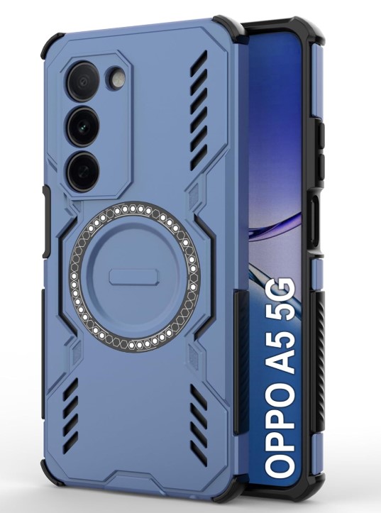 Oppo A5 5G | Magnetic Case with Built-in Metal Ring | Supports MagSafe Charger, Wallet & Car Mount | Shockproof Hybrid PC + TPU | Blue