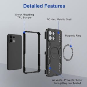 Protect your Oppo K13 5G in style with this Magnetic Hybrid Case designed for ultimate functionality and durability. Made with a premium PC + TPU dual-layer build, this case provides strong shockproof protection against drops, scratches, and daily wear. The built-in metal ring not only works as a stand but also makes it fully compatible with MagSafe chargers, wallets, and magnetic car mounts, offering convenience for modern lifestyles. With a sleek black finish, it delivers a perfect balance of elegance and toughness.