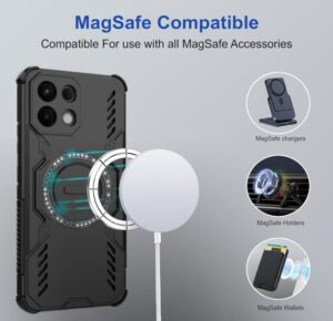 Protect your Oppo K13 5G in style with this Magnetic Hybrid Case designed for ultimate functionality and durability. Made with a premium PC + TPU dual-layer build, this case provides strong shockproof protection against drops, scratches, and daily wear. The built-in metal ring not only works as a stand but also makes it fully compatible with MagSafe chargers, wallets, and magnetic car mounts, offering convenience for modern lifestyles. With a sleek black finish, it delivers a perfect balance of elegance and toughness.