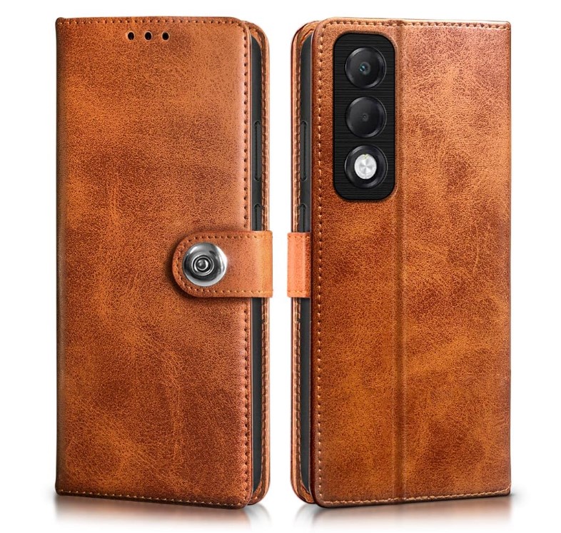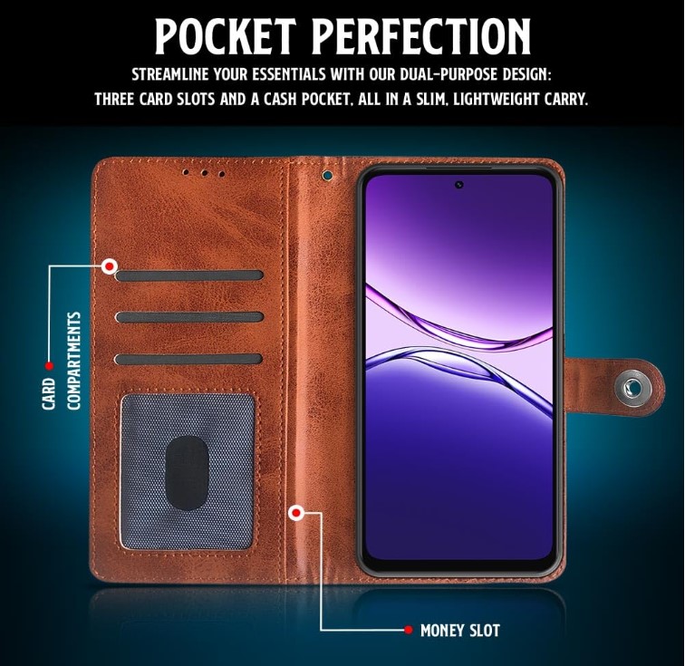 Enhance your Oppo K13x 5G with this Magnetic Flip Case, combining style, protection, and convenience. The premium leather finish in Alder Brown adds a sophisticated touch, while built-in wallet pockets let you carry cards and cash easily. The foldable stand feature makes hands-free viewing effortless, and the magnetic closure keeps your phone secure. Slim yet protective, this case is perfect for professional and everyday use.