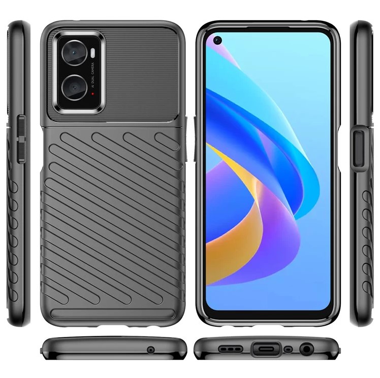 Realme 9i/Oppo A76/A96 4G Thunder Series Twill Texture Soft TPU Phone Case Thickened Shockproof Cover – Black