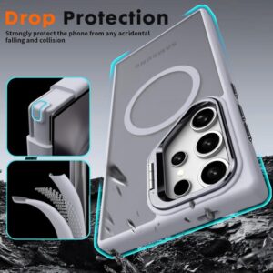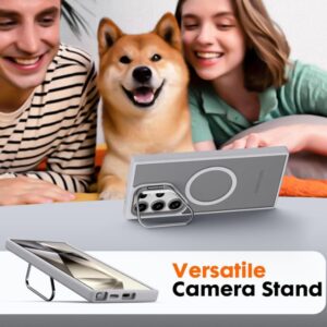 Samsung Galaxy S25 Ultra Case Compatible with Wireless Charging, with Camera Stand, Military Grade Drop Tested,Translucent Hard Back Soft Edge Back Cover (Titanium)
